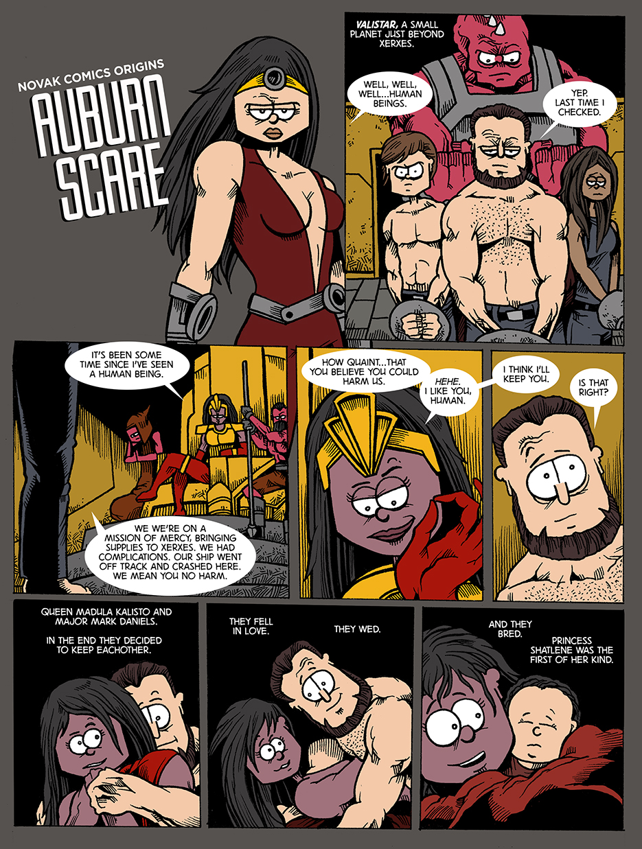 NOVAK COMICS ORIGINS – AUBURN SCARE – PAGE ONE